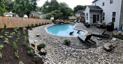 This typically can start after tile and coping is completed. Here is where a lot of the visual progress is made on the site. The crew will typically start with grading the property in preparation for pool deck installation or other hardscape projects occurring in the property. The crew will continue to lay the base of the pool deck depending on the pool deck material, whether it be a concrete pool deck, Pavers, or natural stone the base material may change. After installation of the pool deck. The crew will continue into landscaping and re beautifying the once warzone. The Hardscape/ landscaping crews are typically on site everyday (M-F barring weather or unexpected delays) working on the project at this point, so progress tends to be more visible.